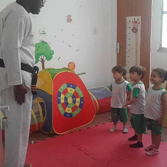 A proporção é de 3 crianças para cada educador no berçario I e II e 5 crianças por educador nas demais turmas, garantindo atenção individualizada.